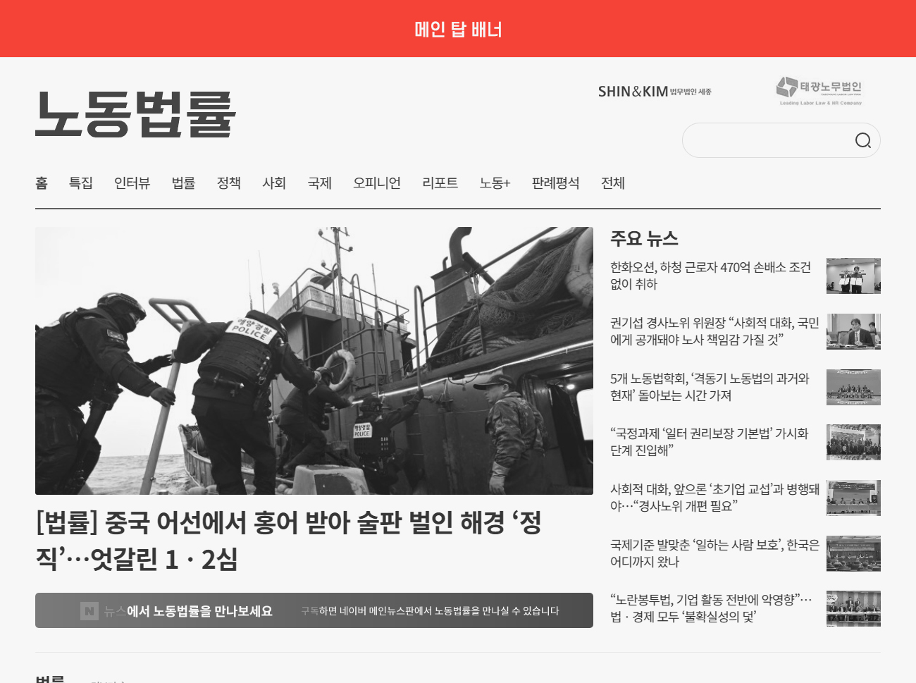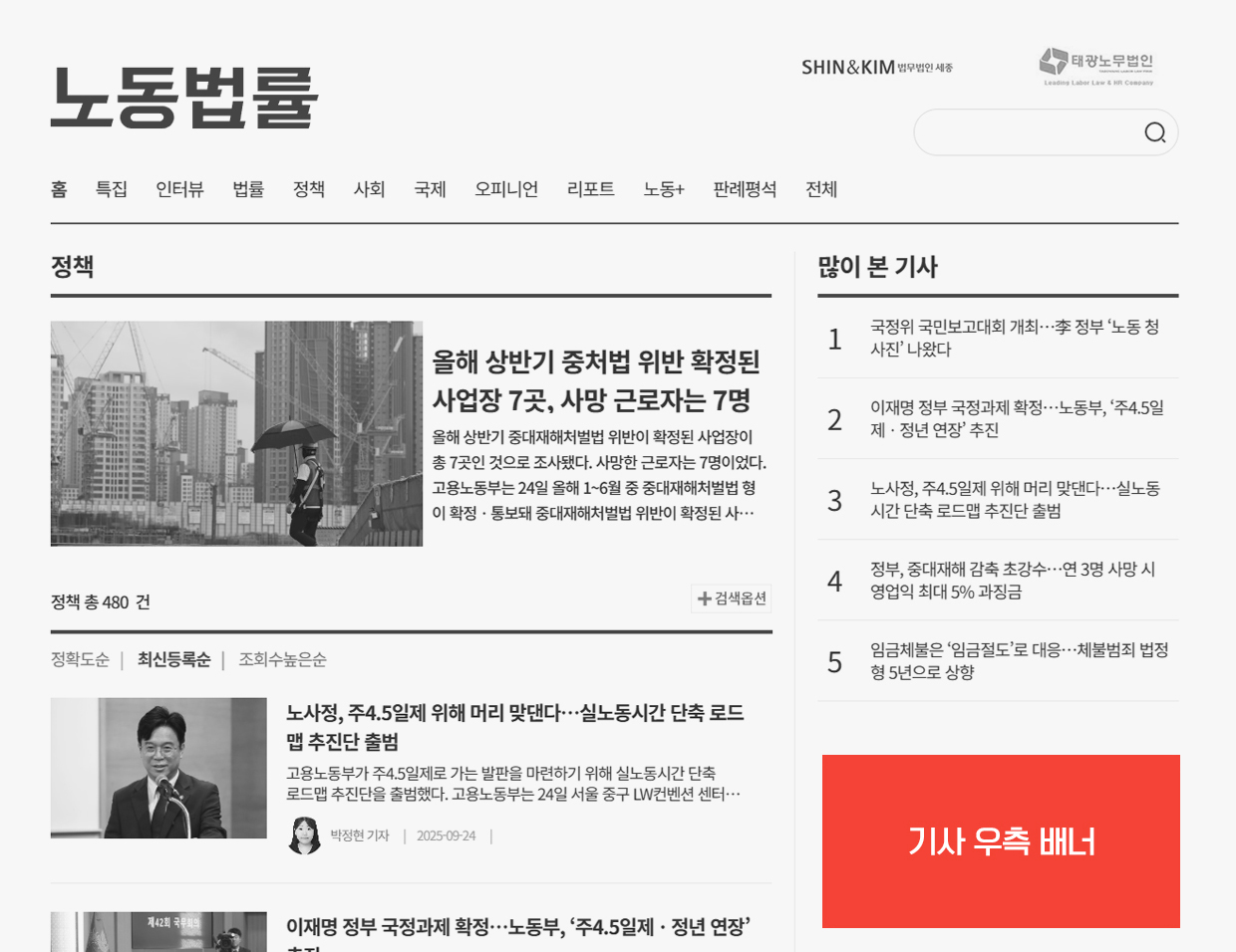 ¸Å¿ù ¹ß°£µÇ´Â ±¹³» À¯ÀÏ, ÃÖ°í ±ÇÀ§ÀÇ ³ëµ¿¹ý ³ë¹«°ü¸® Àü¹® ¿ù°£ ¸Åü ÀÔ´Ï´Ù. »ê¾÷ÇöÀå¿¡¼ ¹ú¾îÁö´Â ³ëµ¿°ü·Ã °¢Á¾ »ç°Ç, »ç°í ±×¸®°í À̸¦ µÑ·¯½Ñ ³ë»ç°ü°è ¹× ³ëµ¿¹ý ºÐÀï µî¿¡ À̸£±â±îÁö ±íÀÌ ÀÖ°í »ýµ¿°¨ ³ÑÄ¡´Â ÄÁÅÙÃ÷¸¦ Á¦°øÇÕ´Ï´Ù. ³ë¹«°ü¸® ÇöÀå ½Ç¹«ÀÚµéÀÇ Needs¸¦ öÀúÈ÷ ºÐ¼®, ±º´õ´õ±â ¾ø´Â ÇÙ½ÉÁ¤º¸¸¸À» °íÁýÇÕ´Ï´Ù.