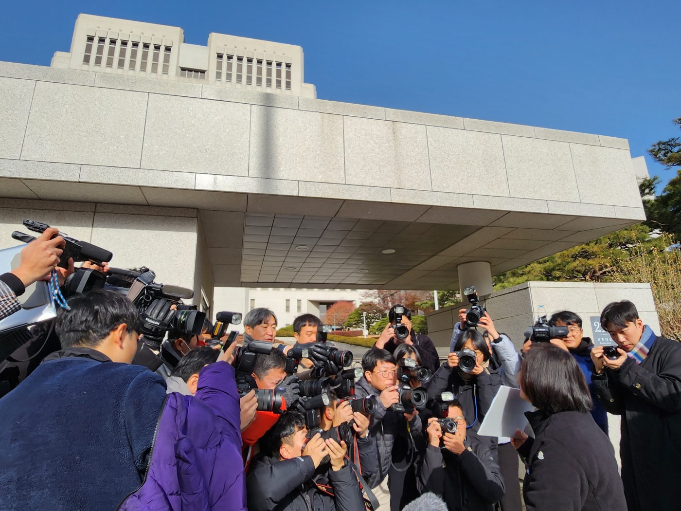 ¡ã2018³â žÈȷ¹ßÀü¼Ò¿¡¼ ¼ûÁø °í ±è¿ë±Õ ¾¾ÀÇ ¾î¸Ó´Ï ±è¹Ì¼÷ ±è¿ë±ÕÀç´Ü ÀÌ»çÀå(°¡¿îµ¥)ÀÌ ¿øÃ»ÀÎ Çѱ¹¼ºÎ¹ßÀü ´ëÇ¥¿¡°Ô ¹«Á˸¦ È®Á¤ÇÑ ´ë¹ý¿ø ¼±°í Á÷ÈÄ ¼¿ï ¼Ãʱ¸ ´ë¹ý¿ø ¾Õ¿¡¼ ±âÀÚȸ°ßÀ» ÁøÇàÇϰí ÀÖ´Ù. ±è¿ë±Õ ¾¾ÀÇ µ¿·áÀÎ ÀÌżº Àü±¹°ø°ø¿î¼ö»çȸ¼ºñ½º³ëÁ¶ ¹ßÀüºñÁ¤±ÔÁ÷´ëÇ¥ÀÚȸÀÇ °£»ç(¿À¸¥ÂÊ¿¡¼ ³× ¹øÂ°)´Â ´«¹°À» °¨ÃßÁö ¸øÇß´Ù. (ÀÌÁö¿¹ ±âÀÚ jyjy@)