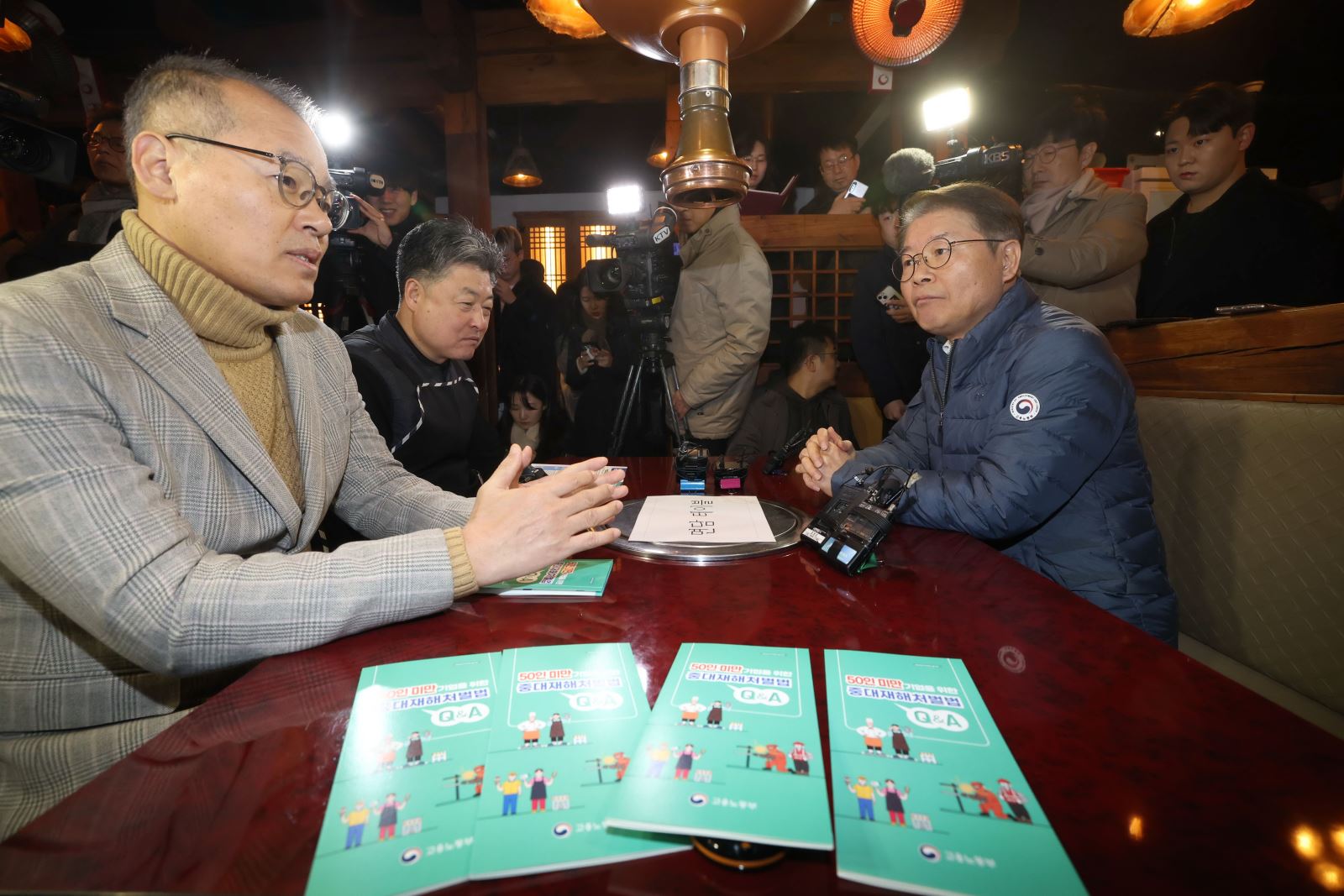 ¡ãÀÌÁ¤½Ä °í¿ë³ëµ¿ºÎ Àå°üÀÌ 29ÀÏ ¿ÀÀü ¼¿ï Áß±¸ ¸íµ¿ÀÇ ÇÑ À½½ÄÁ¡À» ¹æ¹®ÇØ ¼Ò±Ô¸ð ¼ºñ½º¾÷ »ç¾÷Àå ´ëÇ¥µé°ú ¸é´ãÇϰí ÀÖ´Ù. (»çÁø=´º½Ã½º)