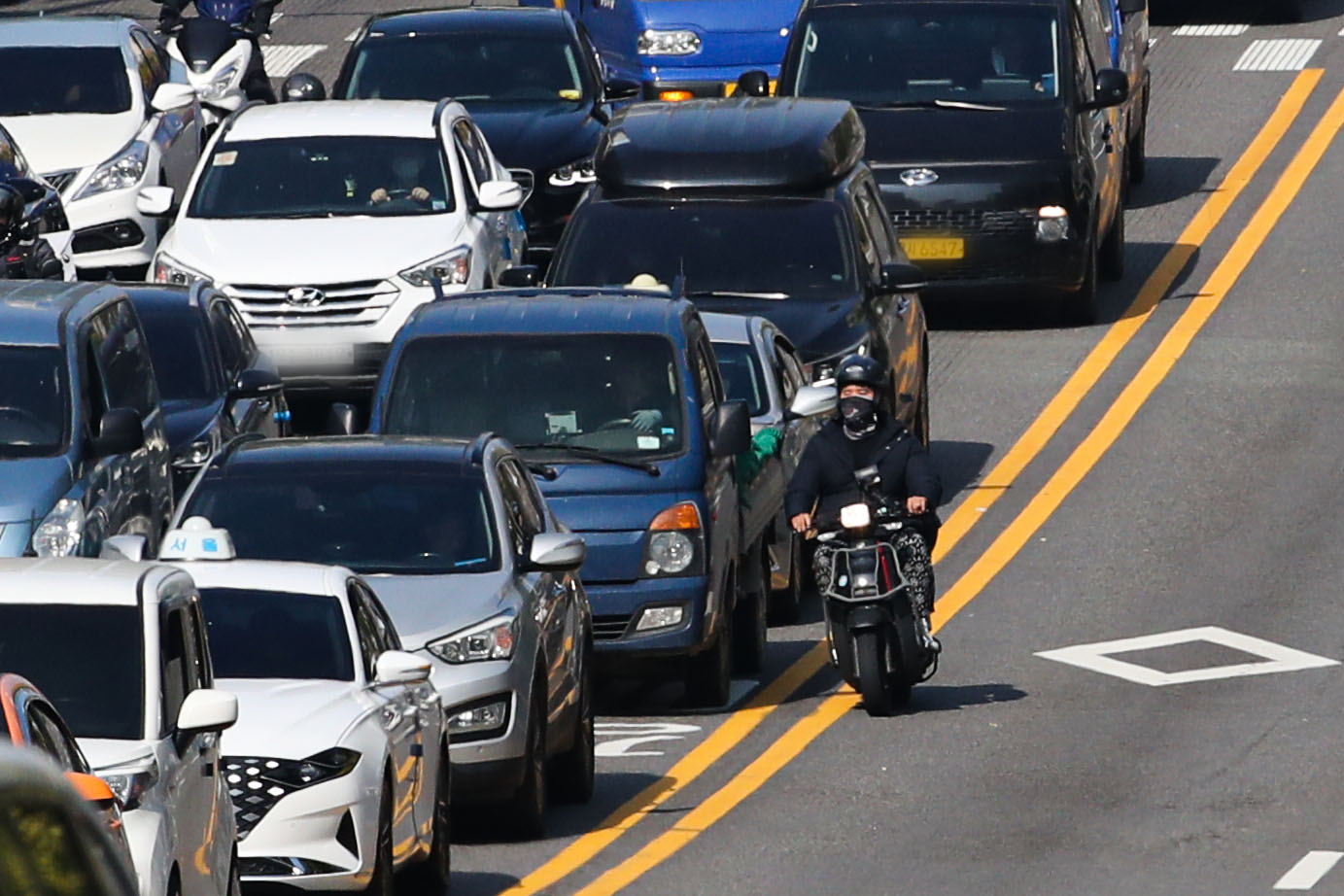 ¡ã¼¿ï ½Ã³» °Å¸®¿¡¼ Áß¾Ó¼±À» ħ¹üÇØ ¿ÀÅä¹ÙÀ̰¡ ´Þ¸®°í ÀÖ´Ù. (»çÁø=´º½Ã½º)