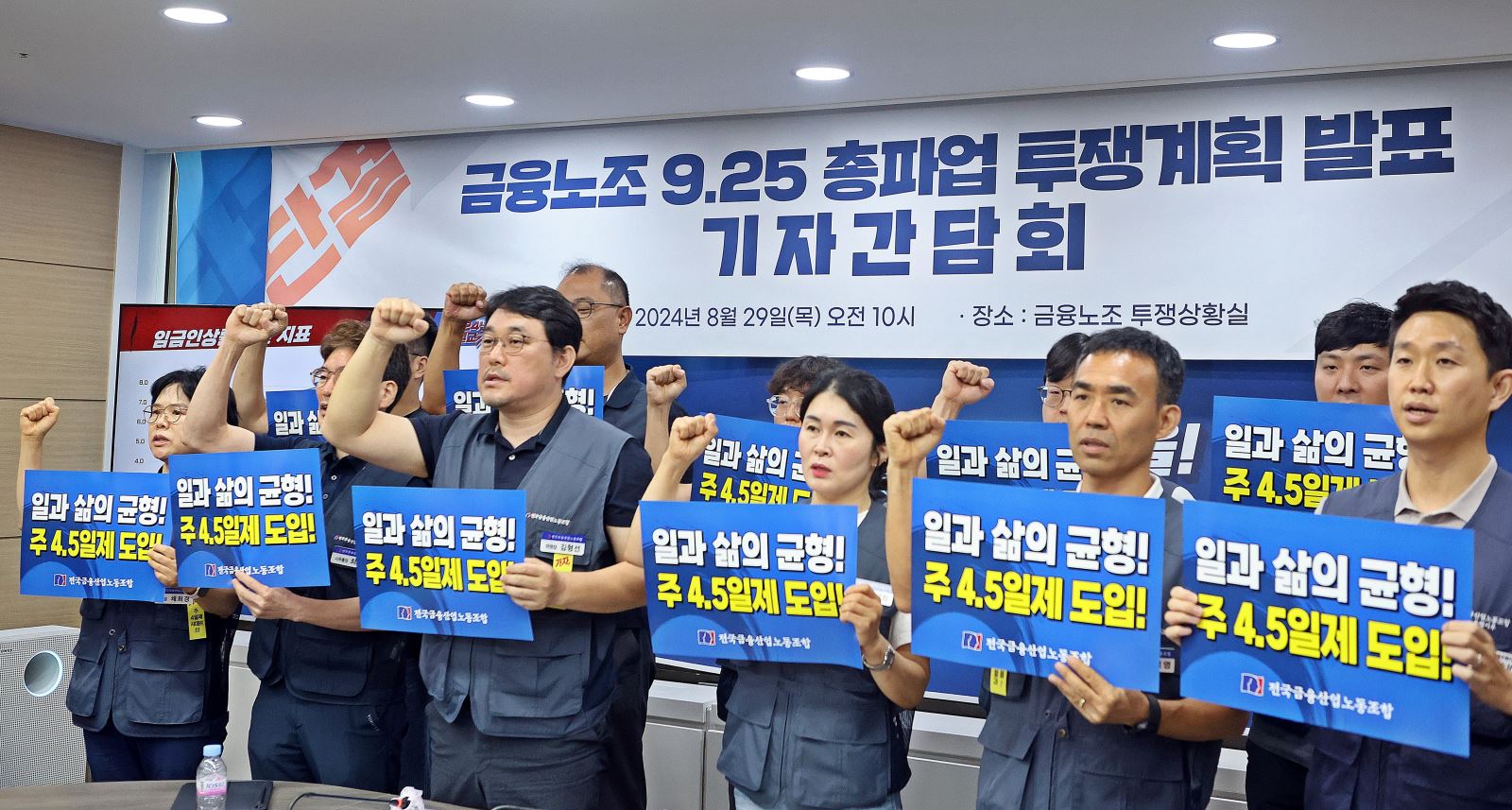 Àü±¹±ÝÀ¶»ê¾÷³ëµ¿Á¶ÇÕ(±ÝÀ¶³ëÁ¶)ÀÌ ÁÖ4.5ÀÏÁ¦, ¿µ¾÷½Ã°£ ´ÜÃà µîÀ» ¿ä±¸ÇÏ¸ç ´ÙÀ½ ´Þ 25ÀÏ ÃÑÆÄ¾÷¿¡ ³ª¼±´Ù. ±ÝÀ¶³ëÁ¶´Â »çÃøÀÌ ÁÖ4.5ÀÏÁ¦ ½ÃÇà¿¡ ÇÕÀÇÇϸé ÀÓ±ÝÀλó·ü ¾çº¸µµ °¡´ÉÇÏ´Ù°í ¹àÇû´Ù.