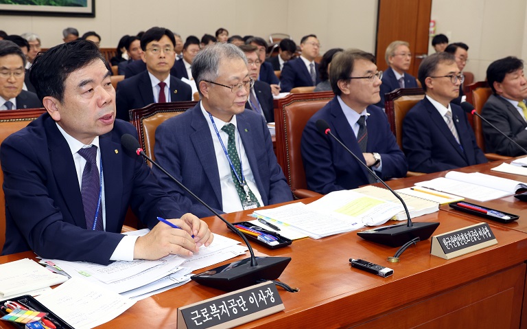 ¡ã¹ÚÁ¾±æ ±Ù·Îº¹Áö°ø´Ü ÀÌ»çÀå(¸Ç ¿ÞÂÊ)ÀÌ Áö³ 22ÀÏ ¼¿ï ¿©Àǵµ ±¹È¸ ȯ°æ³ëµ¿À§¿øÈ¸¿¡¼ ¿¸° ±Ù·Îº¹Áö°ø´Ü, Çѱ¹»ê¾÷¾ÈÀüº¸°Ç°ø´Ü µî¿¡ ´ëÇÑ ±¹Á¤°¨»ç¿¡¼ ÀÇ¿øµéÀÇ ÁúÀÇ¿¡ ´äº¯Çϰí ÀÖ´Ù. (»çÁø=´º½Ã½º)