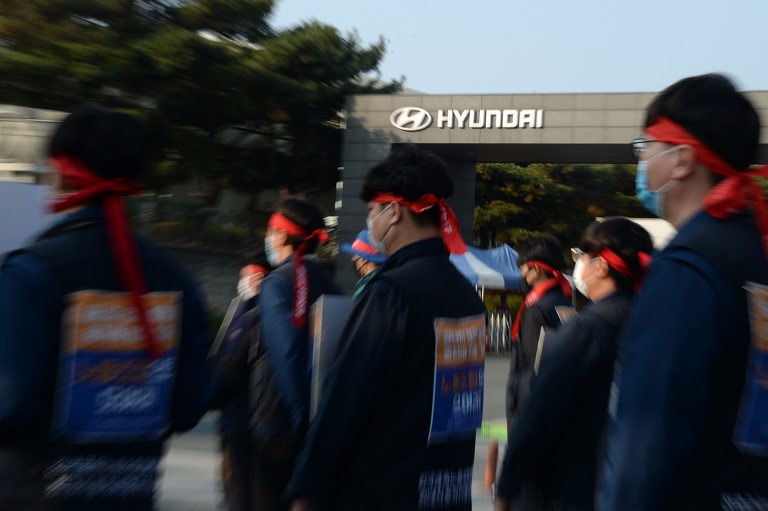 ¡ãÇö´ëÂ÷ºñÁ¤±ÔÁ÷Áöȸ Á¶ÇÕ¿øµéÀº Áö³ 2020³â 11¿ù Çö´ëÀÚµ¿Â÷ ÀüÁÖ°øÀå Á¤¹® ¾Õ µµ·Î¿¡¼ 'ÀüÅÂÀÏ ¿»ç 50ÁÖ±â Á¤½Å°è½Â ºñÁ¤±ÔÁ÷ Â÷º°Ã¶Æó ÃÑÆÄ¾÷ °áÀÇ´ëȸ'¸¦ ¿°í ±¸È£¸¦ ¿ÜÄ¡°í ÀÖ´Ù. (»çÁø=´º½Ã½º)
