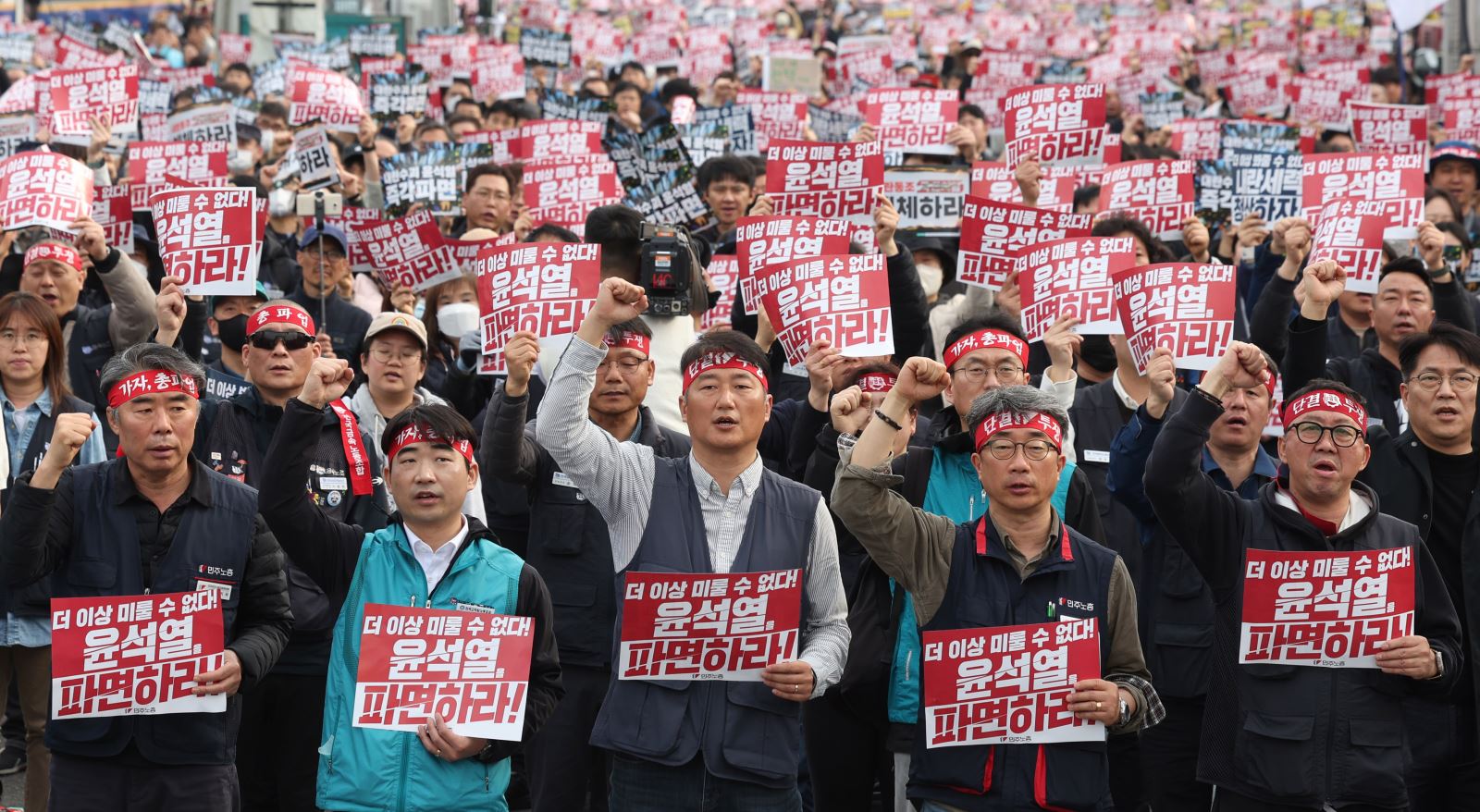 • ¡ãÀü±¹¹ÎÁֳ뵿Á¶ÇÕÃÑ¿¬¸Í(¹ÎÁÖ³ëÃÑ)ÀÌ 27ÀÏ ¿ÀÈÄ ¼­¿ï Á¾·Î±¸ ±¤È­¹® ±¤Àå Àαٿ¡¼­ '³»¶õ¼¼·Â û»ê! »çȸ´ë°³Çõ ÀïÃë! À±¼®¿­ Áï°¢ ÆÄ¸é ¹ÎÁÖ³ëÃÑ ÃÑÆÄ¾÷¤ýÃÑ·ÂÅõÀï'À» °³ÃÖÇß´Ù. (»çÁø=´º½Ã½º)