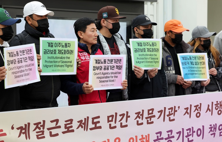ÀÌÁÖ ³ëµ¿ÀÚ ¼ö°¡ Áö³­ÇØ 100¸¸ ¸íÀ» ³Ñ¾î¼¹Áö¸¸ ÀÌÁÖ ³ëµ¿ÀÚÀÇ ³ëµ¿ ȯ°æÀº Á»Ã³·³ ³ª¾ÆÁöÁö ¾Ê°í ÀÖ´Ù. Á¤ºÎÀÇ ÀÕ´Ü °¨µ¶¿¡µµ ±¸Á¶Àû ÂøÃë°¡ À̾îÁö´Â ¿øÀÎÀº ÀÌÁÖ ³ëµ¿ÀÚ¸¦ »ç¾÷ÁÖ¿¡°Ô ¹­¾îµÎ´Â Çѱ¹ÀÇ ÀÌÁÖ ³ëµ¿ÀÚ Á¤Ã¥ Ʋ ÀÚü¿¡ ÀÖ´Ù´Â ÁöÀûÀÌ ³ª¿Â´Ù.